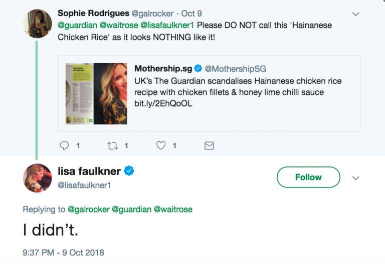 最近英国一本杂志The Guardian Lab发表了一名英国厨师Lisa Faulkner撰写的“海南鸡饭”食谱。