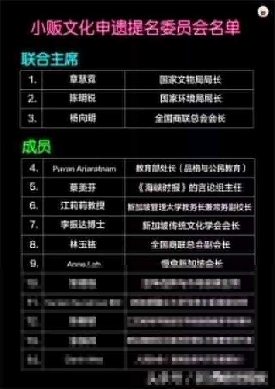 来,大家猜猜看,有多少名小贩和多少位有经营小贩中心经验的人,获选为这个监督新加坡的小贩文化申遗工作的委员会成员?