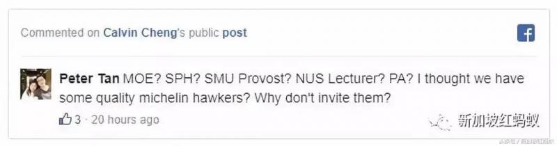 这个网民留言说,委员会的成员不是教育部高级官员,就是报业控股员工、新加坡管理大学校长、国大讲师以及人民协会职员。本地有那么多米其林星摊贩,为何不邀请他们加入?