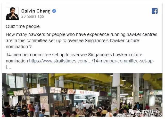 前官委议员郑恩里(Calvin Cheng)今天凌晨在面簿上转发《海峡时报》的文章时,以调侃的口气问道: