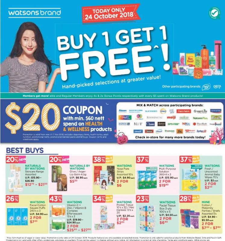 广告1. 屈臣氏自有品牌产品买一送一 仅限今天
