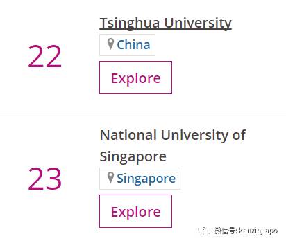 (世界大学排名中,清华第22位,NUS第23位)