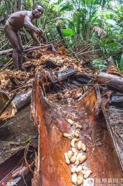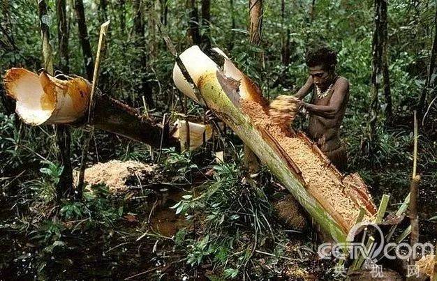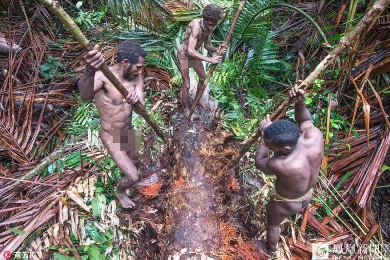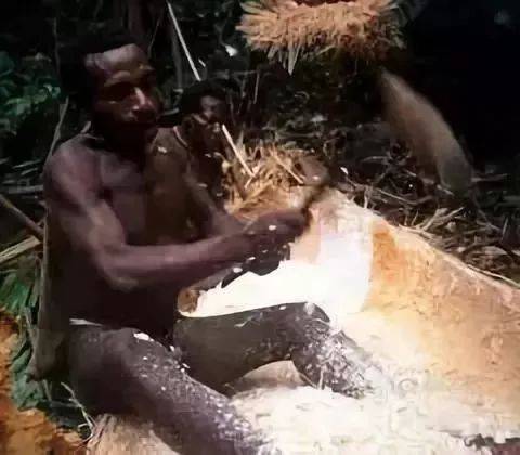 从照片中可以看出,“食人族”的生活方式仍旧非常原始,他们衣不遮体、伐木取火,并且拾取虫子作为食物。