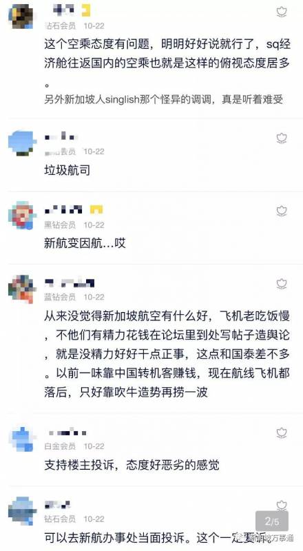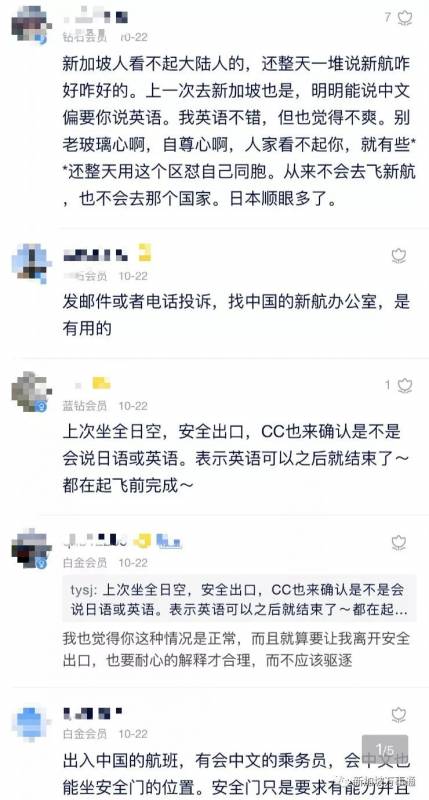 我在飞客茶馆和诸多资深的航空公司金卡白金卡用户描述我的经历,他们都表示新航对待中国人是区别对待,看不起中国人,综合考虑我父母那天的遭遇,我更确定不仅仅是态度问题更是一种由来已久的歧视!!!