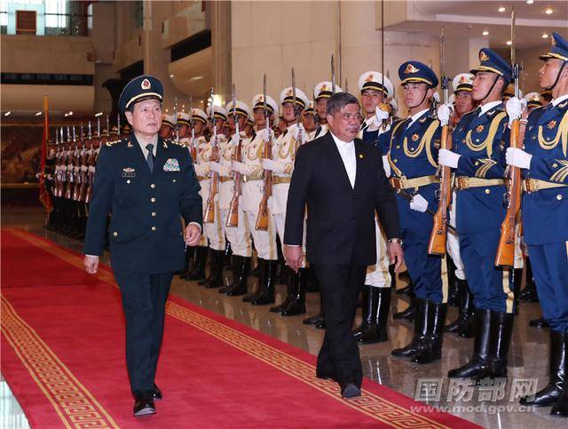 会谈前,魏凤和分别为黄永宏和萨布举行欢迎仪式,并陪同检阅中国人民解放军三军仪仗队。(尹航)