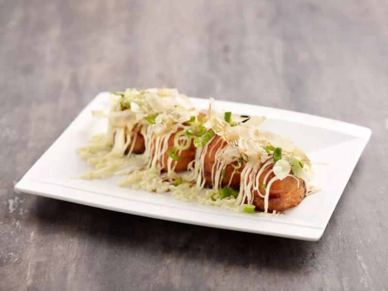 章鱼烧 (Takoyaki) ,S$4.80++:美味酥香的章鱼丸,搭配日式蛋黄酱与柴鱼,怎么形容这味道呢?就是豪华版的章鱼小丸子呀。