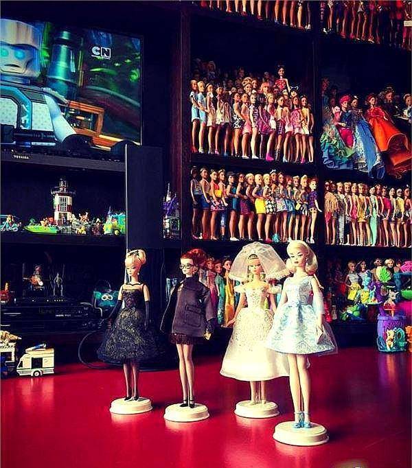建阳的家里到处都可以看到芭比娃娃。芭比娃娃占据了他的客厅里的三堵墙,九个橱柜和架子。当走进他家时,感觉就像走进了一家玩具店。
