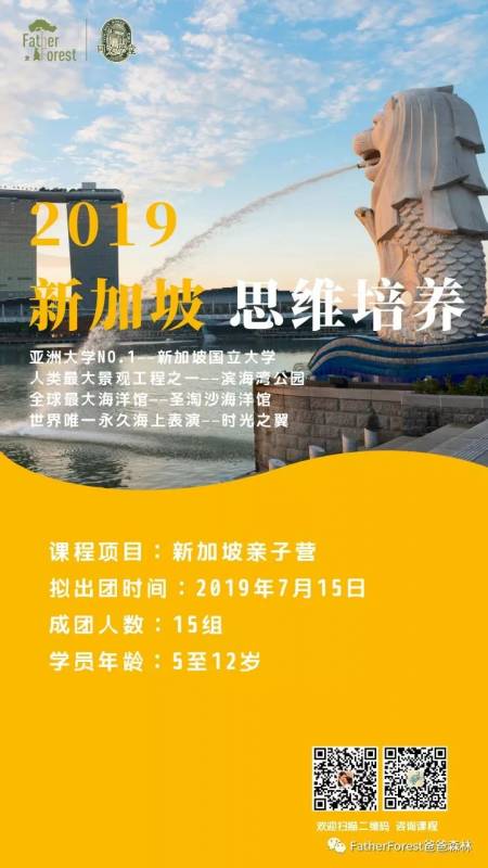 Fatherforest爸爸森林携手华外同文学堂独家设计新加坡亲子课程,以“陪伴孩子成长”为主题,结合新加坡独一无二的特点,我们优秀的学科老师领队,寓教于乐,探索狮城。