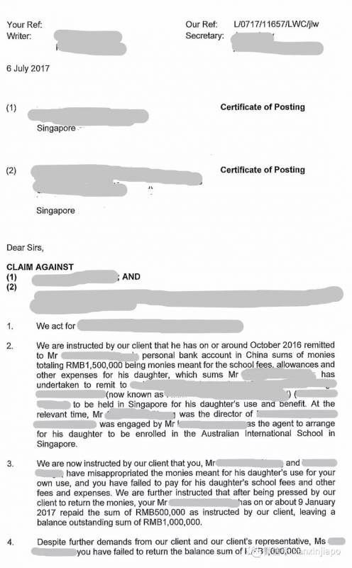 新加坡眼收到网友投稿,某留学公司老板私吞学生学费生活费多达百万人民币,导致学生无法按时交学费而被退学。因此想曝光此人,防止更多人受骗!