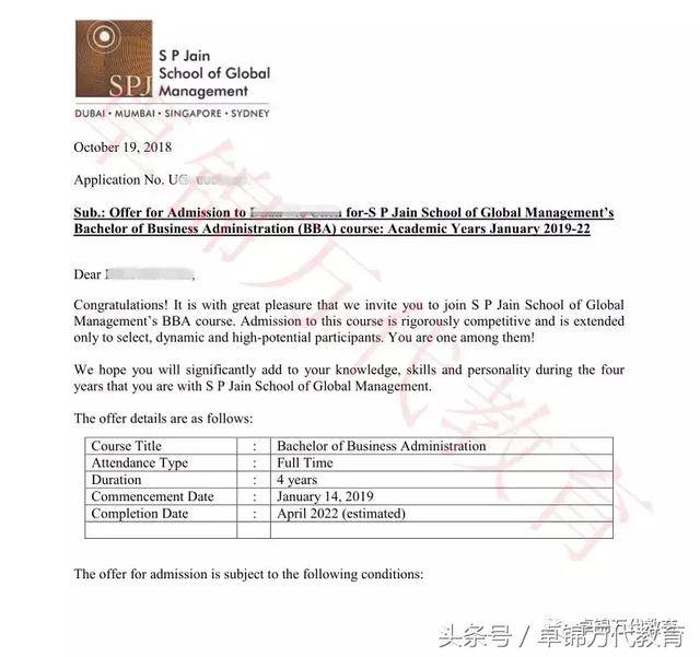 10月19日,经过前期笔试和面试,我机构学生喜获SP JAIN发来的录取信,令人更加惊喜的是,同时学校给予他70%的学费减免,4年合计56000美金,即他一年所需的学费只要4万人民币左右(这个费用比就读任何新加坡的公立大学或私立大学都要低)。除此之外,如果学生在学习期间成绩优异,还可以继续申请100%的学费减免!