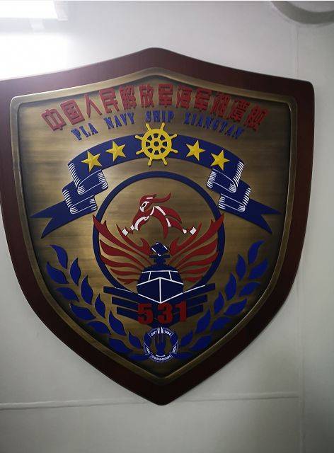 还有人晒出了和湘潭舰官兵的合影,以及湘潭舰的特有徽章。
