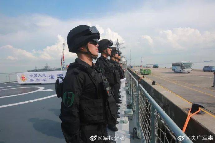 特战队员在甲板分区列队,以上图片图源:央广军事