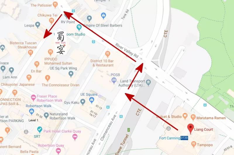 蜀宴离蓝线上的Fort Canning站只需步行8分钟左右就能到达,旁边是有名的日本拉面一风堂IPPUDO。