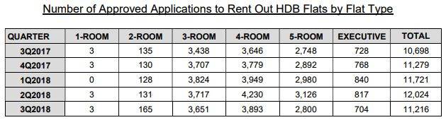 对于组屋租赁市场来说,获得批准可以租赁的组屋数量比第二季度减少了6.7%,其中第二季度为12,024户,而第三季度为11,216户,比去年同一时期增加了4.8%。截止到今年9月30日,新加坡全岛范围有56,074套组屋获准出租,比上一季度增加了2.1%。