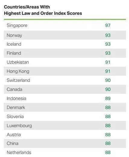 2018年《全球法律与秩序》报告中,新加坡被评为全世界治安最好的国家。