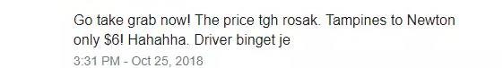10月25日这天,在新加坡任何地方,用Grab打车,统一6元...