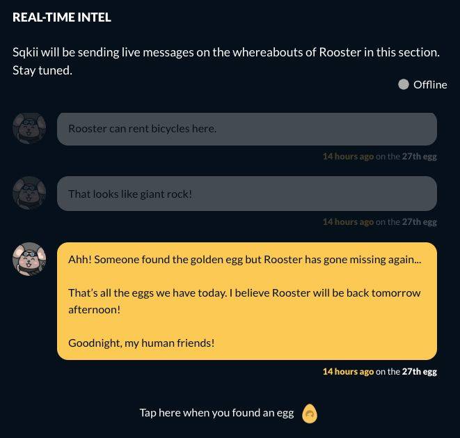登陆网站https://chasingrooster.sqkii.com/,查看Sqkii的实时提示。