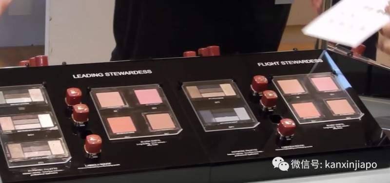 根据职位高低的不同,新航设计了不同色系的眼影。除了黑、棕色系,配合制服的颜色还有相应的“特别眼影”~