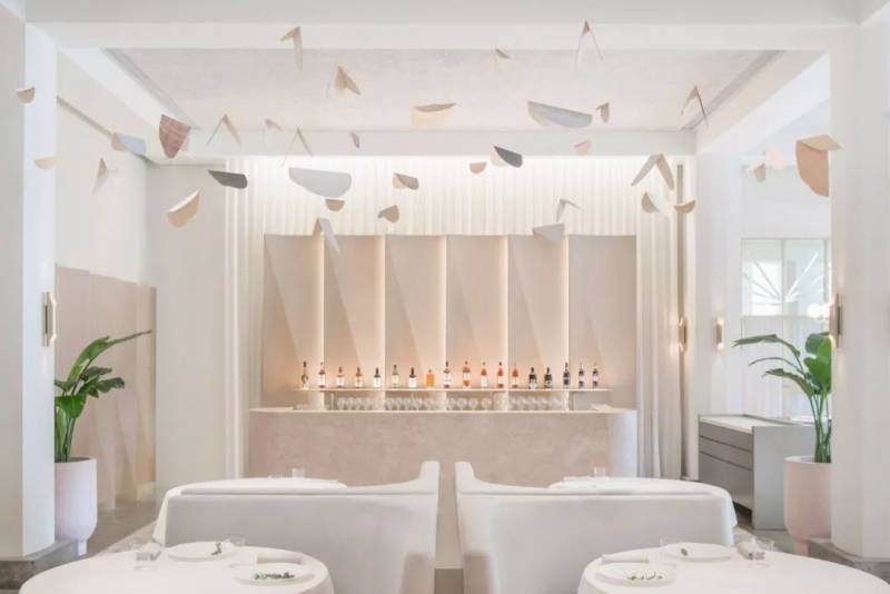这家位于国家美术馆的法国料理餐厅确实美得让人一见倾心,被无数媒体捧为“网红餐厅”的它,却更像是一件真正的艺术品。Odette整体风格都是粉色、淡金色这样柔和的颜色,再搭配灰色的天鹅绒,天花板悬挂着的蝴蝶装置,处处透出一种法式优雅却又不是少女心的情愫,仿佛餐厅本身就是一间艺术馆。