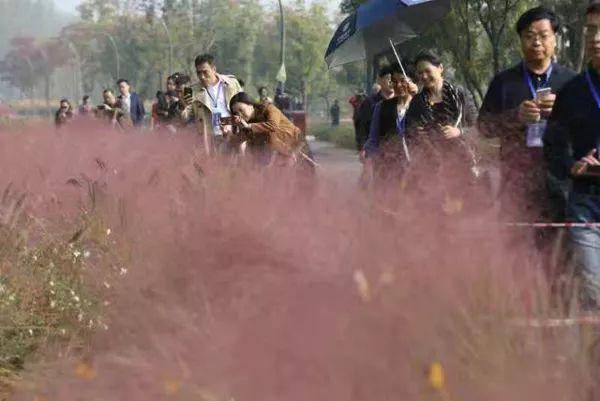 一边是滔滔江水,一边是一眼望不到头的滨江风光带,漫步者可以在江风阵阵吹来无限的惬意中,给心情也做一次深呼吸。社长总编们参观的第三个重点项目,便是江心洲的滨江风光带。这个季节,刷屏朋友圈的粉黛乱子草,那梦幻般的粉红色让所有人的“少女心”爆棚。 前来参观的社长总编们自然也不例外,大家掏出手机或相机,一路走一路拍。“你看!毛绒绒的,还有露珠在上面,太美了!”开封日报报业集团党委副书记、总编辑、副社长、副董事长屈艳枝说,