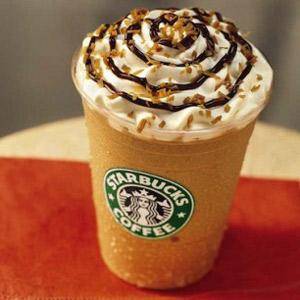 在JavaChip Frappuccino加上些toffeenut,然后在奶油上浇上