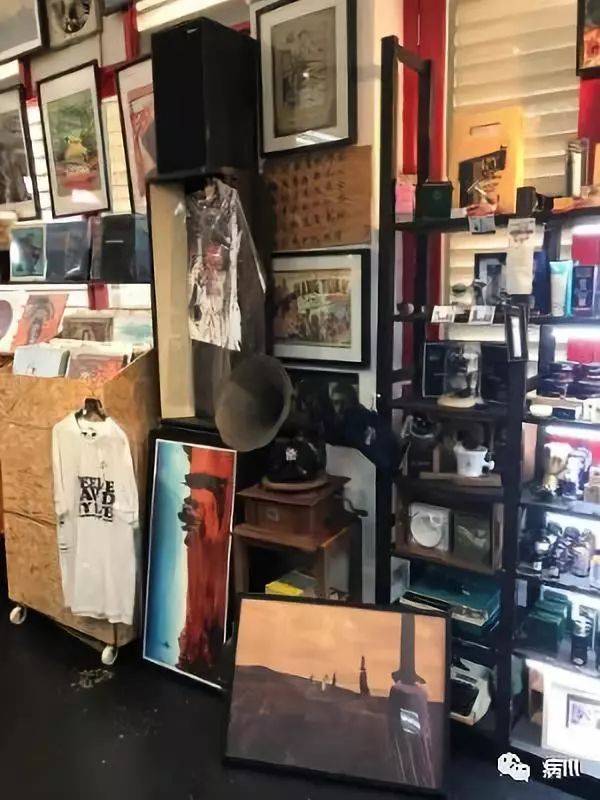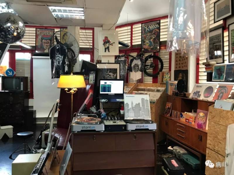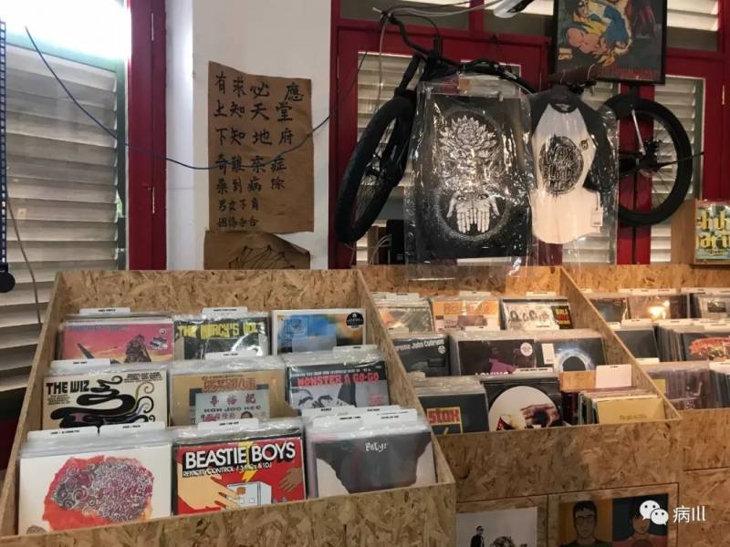 第二家我选择拜访的则是位于红灯区Geylang的The Barbershop Music,因为在脸书上发现他们也有卖Dopesmoker的海报所以便来一探究竟。这是一家隶属于理发店/Livehouse "Panic Room"的唱片店(音乐角好像也可以这么说),因此而取名。在穿过入口的铁门后走上二楼迎接我的便是墙上画满艺术线稿的长廊,走到尽头往左转之后便到达了别有一番洞天的店里。与Roxy Records到处铺满黑胶CD以及相关周边不同的是,The Barbershop Music的内部装修就随性很多:除去唱片店一定会有的黑胶筐外,墙上还挂着各式各样的装框艺术海报,以及一辆自行车-_-|||,随性且充满艺术气息;还有一块专门供乐手们练习和演出的地方(Record Store Day的时候还有专门的演出),而另外片区域则陈列著了各式各样理发用品,如果你对自己发型不满意的话买完胶还可以当场在这里理发,真可谓完美的一站式一条龙服务。
