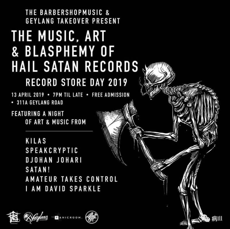 Barbershop Music主理人Kilas则是新加坡本地颇为著名的艺术家,擅长飘逸的花体字体设计以及类似于版画风格的手绘(墙上的部分海报以及T恤是他设计的),曾为知名滑板品牌Creatures设计过滑板。另外他还管理著自己的厂牌(Hail Satan Records),同时也是新加坡本地后金属乐队SATAN!的鼓手,身兼数职的他平日非常繁忙,不过没想到居然让我在店里遇到了,聊了一会发现他也非常非常喜欢泥浆金属。