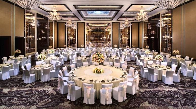 无柱式的宴会厅庄严宏伟,以手工切割的精美水晶吊灯装饰,营造出卓越非凡、至善至雅的氛围。