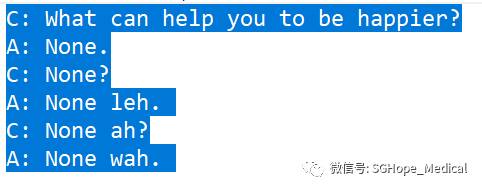 C是我,A代表的是虚拟来访者,我问了她一个有关于如何可以帮助她更快乐的问题,于是就有了以上这段经典对话。短短8个词,看起来是那么的简单,但其中传达的意思却很深远,每行字都有些微小的意义差别。