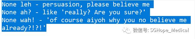 下面再来看一位苏格兰小朋友对这段对话的解读——小朋友毕竟在新加坡待过两个月,对于新加坡英语有了不错的认识,他的解读看起来可就专业多了。
