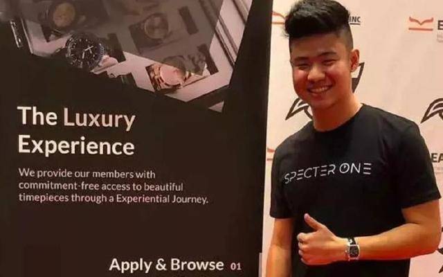 听起来十分有诱惑力!另一家公司Acquired Time同样成立于17年,也是每月付费共享名表。两家公司先后创立,共享手表的风头正盛。瞄准这个市场的另一家公司,也开始逐渐成形。Sendi Heng是新加坡新跃动社科大学的在校学生,去年看准了名表共享的创业机会,果断退学创业,成立了新的共享手表公司Specter One!他认为年轻人经济实力有限,但是喜爱名贵手表,市场需求很大。