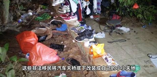 警方在当晚的行动一共逮捕了五名非法移民,并起获4332包漏税香烟,漏报的关税和消费税额分别达约4万3980元和3190元。 据现场观察,非法移民将汽车天桥旁的沟渠改装成自己的小小天地,除了摆放椅子,还用树木制成晾衣架。现场也找到大量衣物、鸡蛋和薯片等食品,以及10多双名牌跑步鞋。