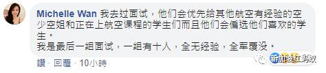 “我去过面试,他们会优先给其他航空有经验的空少、空姐和正在上航空课程的学生们,……我是最后一组面试,一组有十人,全无经验,全军覆没。”