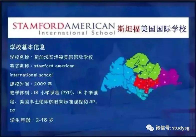 1、新加坡史丹福美国国际学校是新加坡第一所,也是唯一一所同时开办美国教育课程与国际中学毕业会考课程(International Baccalaureate,简称IB)的学校,学校为2-18岁的学生提供北美体制教育,是全球知名的国际学校之一。