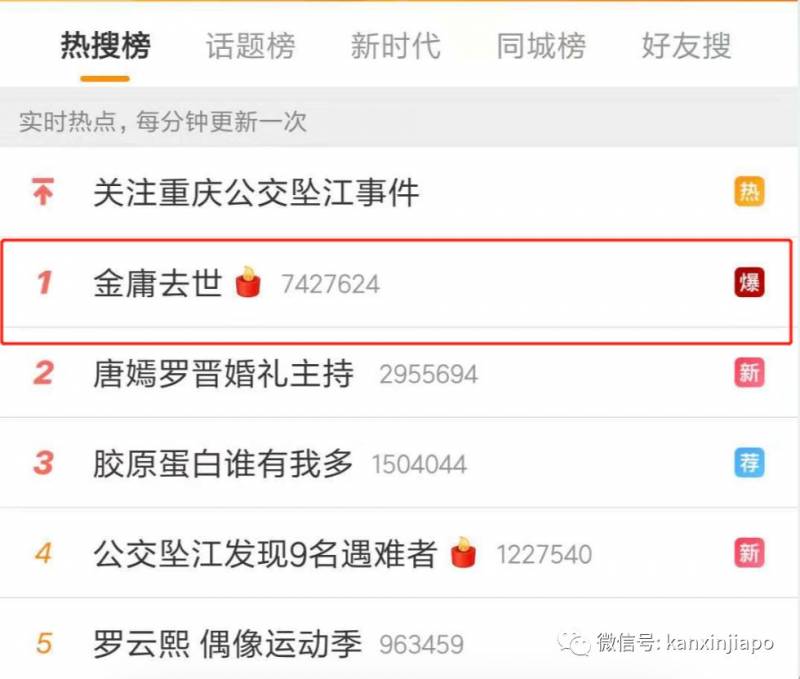 短短几分钟后,武侠小说泰斗去世的消息,便登上了微博热搜。