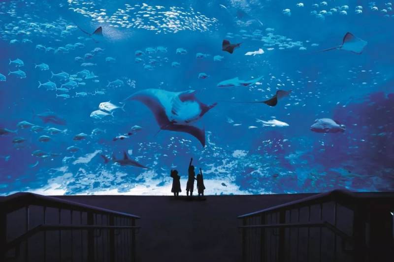作为全球最大的海洋馆,这里生活着800多个物种共计100,000多只珍贵海洋生物。夜幕降临,置身迷人的蔚蓝大海之中,轻轻呼吸,让千千万万只海洋精灵掠过你的眼前。有看似温柔实在剧毒无比的“海洋杀手”水母;有变色龙一般可以巧妙改变身体颜色,与珊瑚、植物巧妙融为一体的北太平洋巨型章鱼;被誉为“魔鬼鱼”的鬼蝠