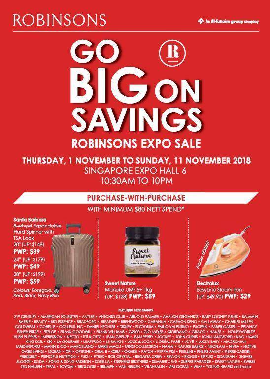 10.31 新加坡优惠合辑 |MUJI家具促销,低至5折;ROBINSONS Expo促销明日开启;Timberland Expo大促 低至2折;科技电子展即将开幕 超多好价来袭;屈臣氏会员日高达68%off,仅限今天