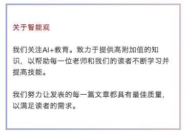 更多干货文章,请智能观的公众号:zhinengguanym,里面很多方法论、干货与前沿思想等文章。在对话框回复:编码书,获取儿童编码相关书籍。有关前沿教育的问题,也欢迎与我们交流。