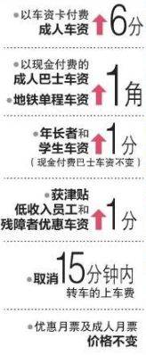 成年人每趟车程,以交通卡付费的将上涨6分,用现金支付则上涨1角。