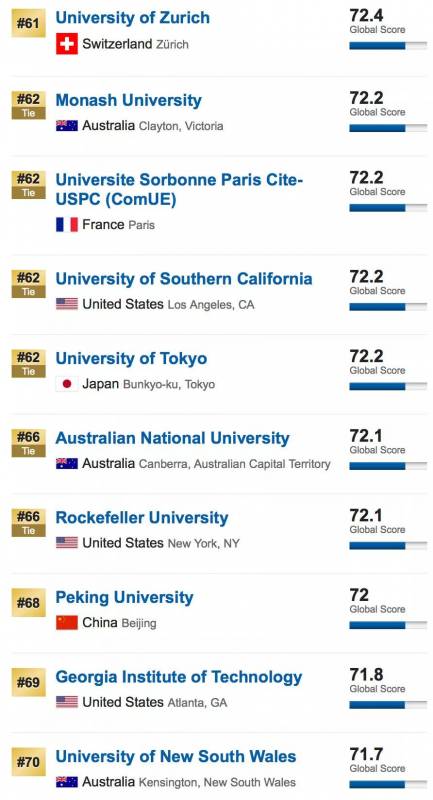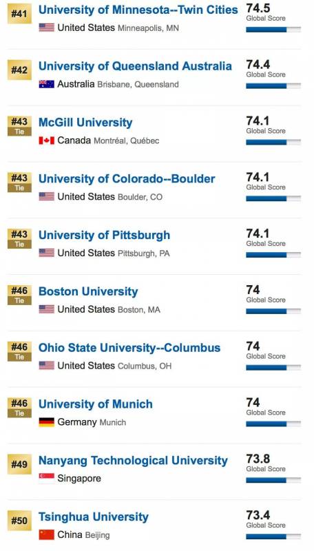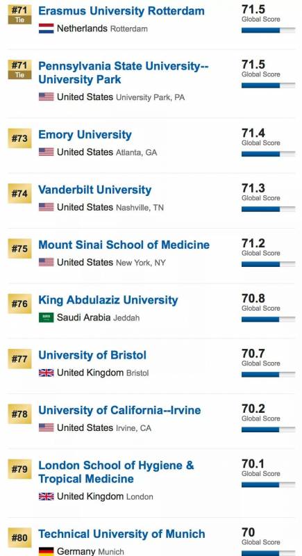 完整排名参见USNEWS官网:https://www.usnews.com/education/best-global-universities/search?region=&subject=&name=