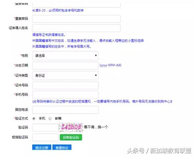 按照个人实际要求填写下面的表格在认证过程中,认证处将通过简讯和邮件向认证申请人发送一些通知信息。为保证申请人能够及时收到通知信息以避免耽误认证进程,系统将对申请人的手机或邮箱进行验证。