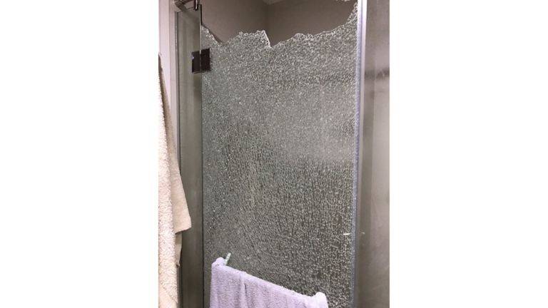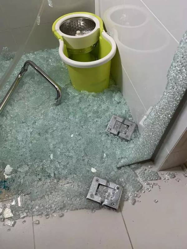 上周日(28日)傍晚,陈先生八岁和六岁的两个女儿刚上完游泳课,像往日一样回家洗澡。没想到,她俩洗完澡,刚拉开浴室的玻璃门,玻璃突然整个爆裂!