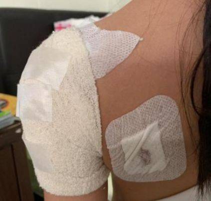 陈先生和妻子甚至找不到孩子伤在何处,但她们一直哭着说疼,妻子把两个女儿带到主人房的浴室简单清洗之后才发现,大女儿Ariel的背上有一个大洞在冒着血!小女儿Lala站得离玻璃门稍微远一些,而且发生爆裂的一瞬间,姐姐霎时间反应转身护住妹妹,所以妹妹只是脚底受了点轻擦伤,可姐姐被飞溅的玻璃碎片割伤肩膀,伤得更重!