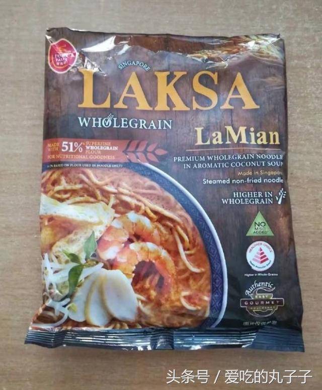 No.1 新加坡叻沙全麦拉面外观(呈橙褐色)面条(浅棕中粗圆柱状)口感(面条选用全麦粉和小麦粉,吃起来很紧实)味道(浓浓的叻沙风味伴随着香甜的椰浆,吃起来回味无穷)食材(香茅和红葱头增加了一丝清香;虾酱和干虾米丰富了汤的口感;白胡椒粉和辣椒粉提高了汤的辣度;椰浆粉使汤更加香甜)调味包(叻沙风味调味料包,椰子粉包)打分(92)