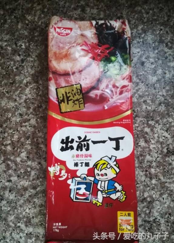 No.9 香港日清出前一丁赤猪骨汤味棒丁面外观(呈橙红色)面条(微黄超细圆柱状)口感(面条很有层次感)味道(淡淡的辣油混合著猪骨汤和鸡肉的香味,汤比较浓)食材(辣油增加了汤的辣味;青葱使汤汁更加香甜)调味包(汤粉包,辣油包)打分(84)
