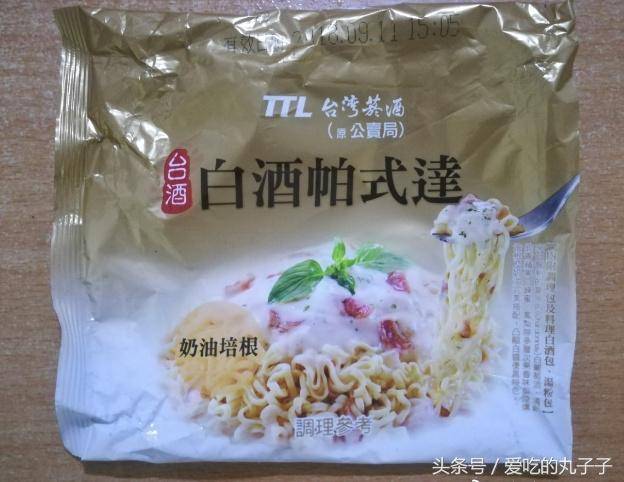 No.8 台湾台酒白酒帕式达奶油培根面外观(呈黄白色)面条(浅黄微宽螺旋状)口感(面条选用面粉和树薯淀粉,吃起来很有弹性)味道(浓浓的奶香混合著满满的培根味,细尝会有一丝丝智利夏多内白葡萄酒的番木瓜香气;汤汁充满了淡淡的玉米、咸芝士和胡椒的味道,层次感十分丰富)食材(鲜奶油增加了一丝奶香;白葡萄酒缓解了少许油腻感;玉米粉使汤更加浓郁;洋香菜叶使汤更香)调味包(料理包,汤包,酒包)打分(85)