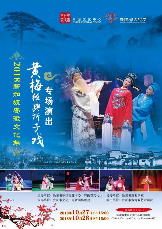 10月27日、28日,由安徽省文化厅、新加坡中国文化中心共同主办的“2018新加坡·中国安徽文化年”之安徽黄梅经典折子戏在新加坡中国文化中心隆重上演。