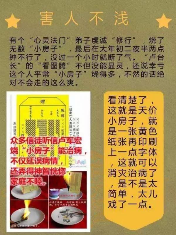 但“心灵法门”却公然违反佛教律制,“小房子”超度亡灵正是所谓“心灵法门”的主要行为之一,属焚烧经文,罪过很大。