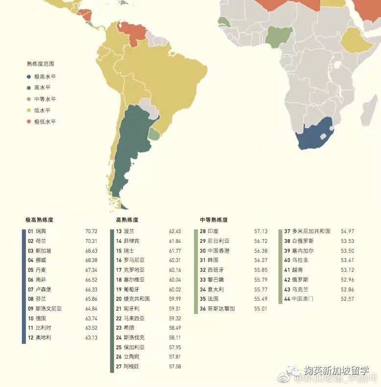 英语为国际语言,有教育公司特意为各地区及国家的英语能力作调查及评分。