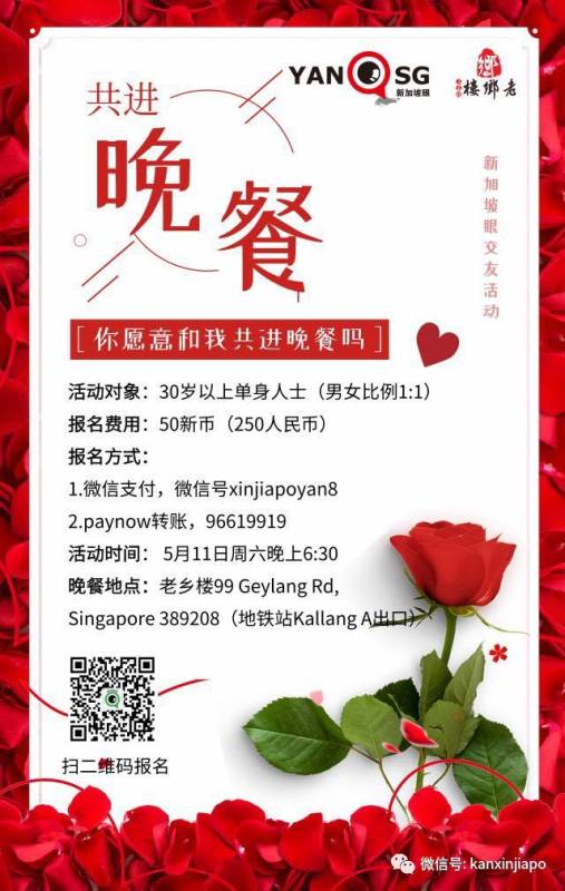 单身太久习惯一个人吃饭?来赴周六的浪漫晚餐吧!目前有女工程师(新加坡公民),女教师(新加坡PR)等报名,欢迎大家加入!